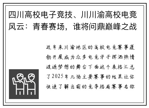 当前,电子竞技培训的选择非常多样,既有全日制的高校专业,也有专注于职业选手培养的青训营和面向艺考的辅导机构。为了让你能快速了解全貌,我用一个表格来汇总主要的培训类型和代表性机构: | 培训类型 | 代表院校/机构 | 所在地 | 核心特点 |BB贝博&...